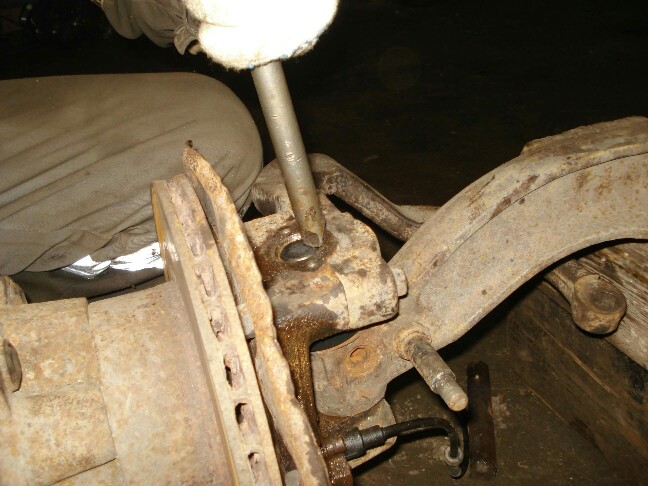 - Разбирается устройство шкворня, затем заливается смазкой ВД-40. Затем с помощью специального инструмента необходимо выбить его из паза. Если же вытащить его не получается, придётся демонтировать полностью балку автомобиля, и с помощью более тяжёлого инструмента повторить удар.